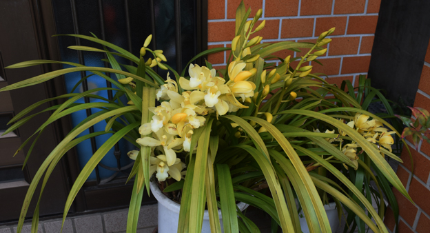 ただし(お店で売っているシンビジウムのように花数は多くはないのですが)花数は少ないのですが、毎年花を付けてくれます。今年は簡易温室の中が低温だったのでしょうアブラムシの発生が少なく醜く食べられることはないようです。