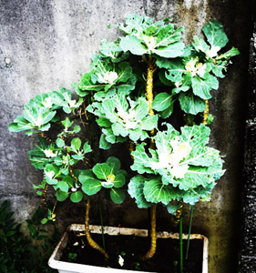 | 今(2025)年の暑く長かった夏を越して踊りハボタンになりました。 |